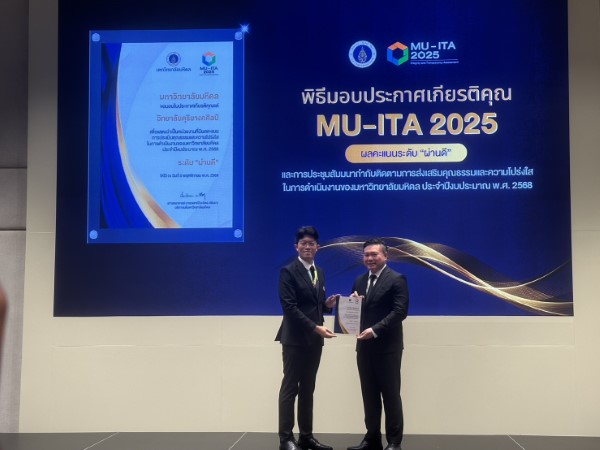 วิทยาลัยดุริยางคศิลป์ มหาวิทยาลัยมหิดล ได้รับ ประกาศเกียรติคุณการประเมินคุณธรรมและความโปร่งใสในการดำเนินงานของมหาวิทยาลัยมหิดล ประจำปีงบประมาณ พ.ศ. 2568