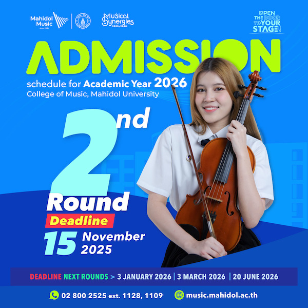 3) Round 5 is for 2nd semester entrance, which begins in November. It is the only admissions round for 2nd semester entrance, for the Bachelor of Music Program all majors are available except Music Technology major, Popular Music majors and Voice (classic), Musical Theatre, and Piano (classic).