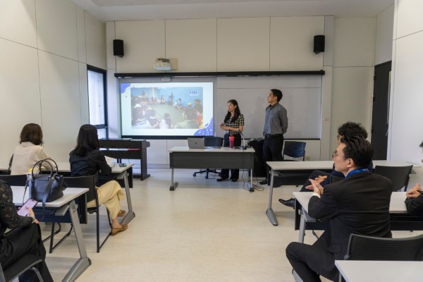 คณะผู้บริหารวิทยาลัยฯ ผู้ให้การต้อนรับและนำเสนอผลงานประกอบด้วย ดร.บุญฤทธิ์ กิจทวีพิทักษ์ (รองคณบดีฝ่ายการศึกษาและกิจการนักศึกษา), อ. อลงกรณ์ เหล่าสายเชื้อ (รองคณบดีฝ่ายบริหาร), ผศ. ดร. ธนพล เศตะพราหมณ์ (รองคณบดีฝ่ายวิชาการ วิจัย และนวัตกรรม) และ นาย ปิยะพงศ์ เอกรังษี (ผู้ช่วยคณบดีฝ่ายการตลาดและสื่อสารองค์กร)