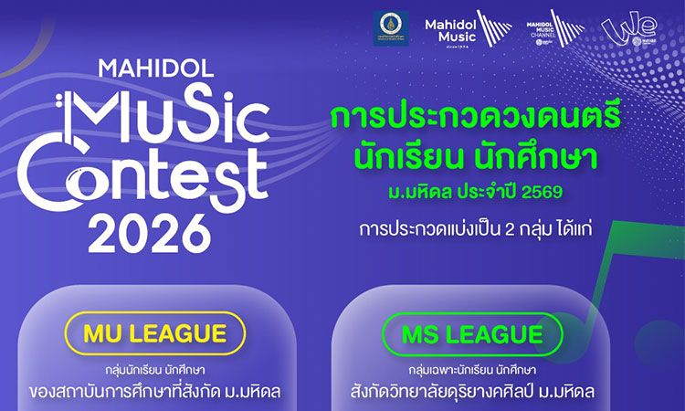 ขอเชิญชวนนักศึกษามหาวิทยาลัยมหิดลเข้าร่วมการประกวด Mahidol Music Contest 2026 เวทีประชันฝีมือของวงดนตรีนักศึกษา มหาวิทยาลัยมหิดล