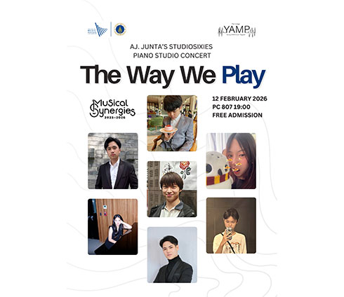 Aj. Junta Piano Studio, StudioSixieS, will present their performance “The Way We Play,” reflecting their pre-college journey, on Thursday, February 12, 2026, at 7:00 PM in PC807.